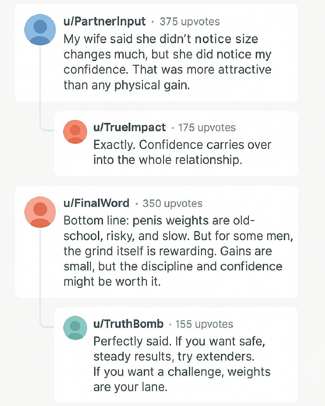 On forums, some men report small gains after months of use. Others see no change. There are few formal studies on penis weights. Most research comes from traction device studies, which use controlled force instead of hanging weights.